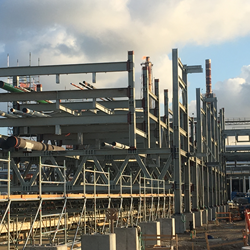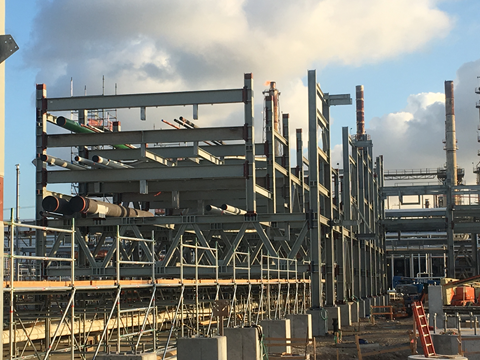 site, with aboveground piping and structural steel currently being