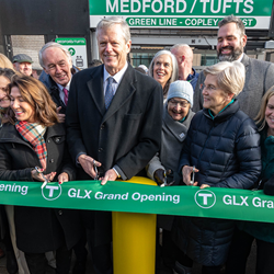 Fluor, together with its project team and others, celebrated the opening of the Medford/Tufts Branch of the Green Line Extension light rail project today. Massachusetts Governor Charlie Baker (center) is joined by U.S. Senators Elizabeth Warren and Ed Markey, Lt. Governor Karyn Polito, Somerville Mayor Katjana Ballantyne, Medford Mayor Breanna Lungo-Koehn and other elected city and state officials (photo courtesy of MBTA)